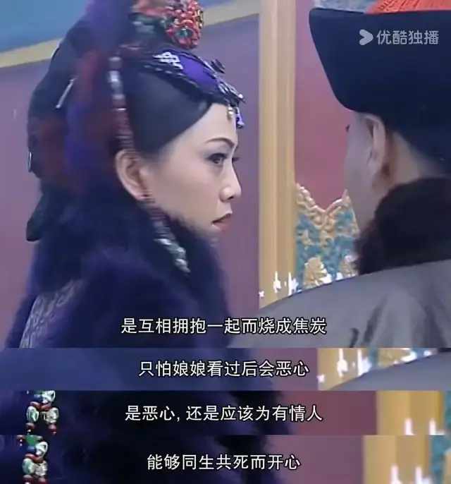 面对被整个后宫嗤之以鼻的私通者的尸体,只有她越过大火,越过那些吃人的规则,看见了这对有情人。
